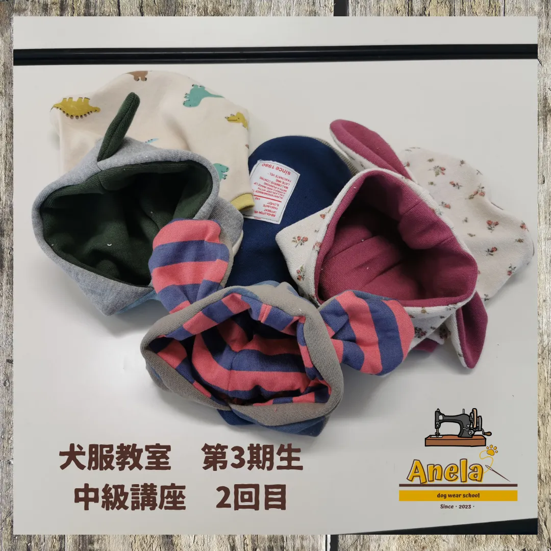 犬服教室 第3期生 中級講座 2回目✨ ハンドメイド犬服&グッズAnelaの犬服教室 中級講座第3期生2回目 本日、開催いたしました ありがとうございました 「こぉやってフード作ってぇ~」と 皆さん真剣に工程をご覧頂き フードのアレンジもご…
